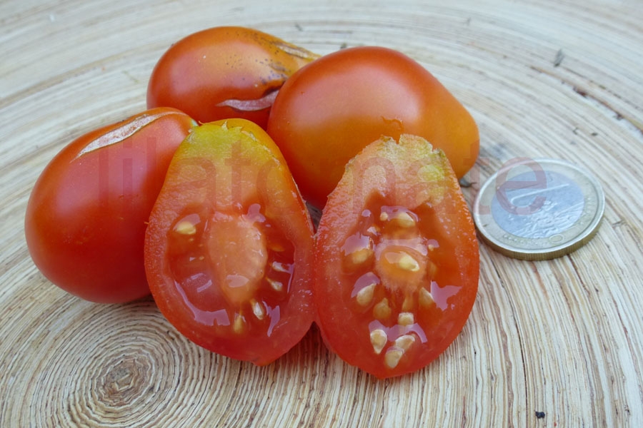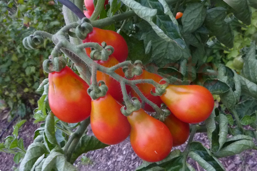 Die birnenförmige, rote Cocktailtomate hat 2 - 3 cm lange, schön geformte Früchte und trägt sehr gut. Die hübsche Frucht kann mit anderen birnenförmigen Cocktailtomaten dekorativ angerichtet werden. Ihr Geschmack ist würzig fruchtig. Süße hat sie kaum.