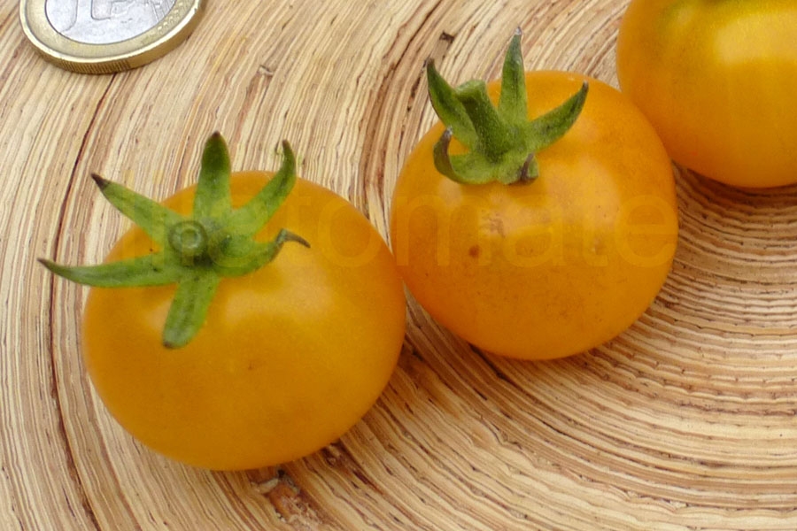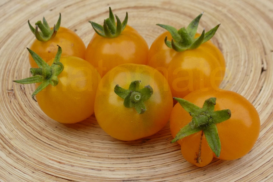 Gelbe Minifleischtomate mit sehr frühem Ertrag von Anfang Juli bis Ende September im Freien. Die hübschen, süßen, fruchtig-würzigen Früchte sind 3 - 5 cm groß, hellgelb, flachrund und leicht gebuchtet. Früchte reifen gut nach und sind weitgehend platzfest.