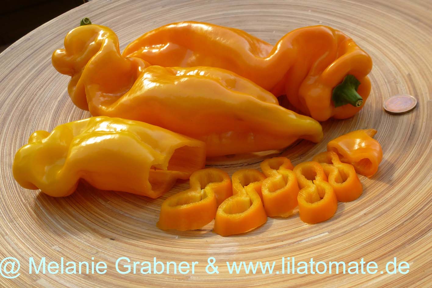 Sehr feine, fruchtige, saftige 10 - 20 cm große Spitzpaprika mit sehr gutem Ertrag von Mitte August bis Anfang Oktober im Gewächshaus. Obwohl die Fruchtwände oft nur etwa 3 mm dick sind, schmecken die Früchte herrlich saftig und waren bei den diesjährigen Verkostungen sehr beliebt. Der Anbau im Gewächshaus lohnt sich bei dieser 1,2m hohen wärmebedürftigen Sorte am meisten. Ich nehme die Sorte trotz des leckeren Geschmackes aus dem Sortiment, weil mir die knautschigen Früchte etwas zu aufwendig bei der Verarbeitung sind.