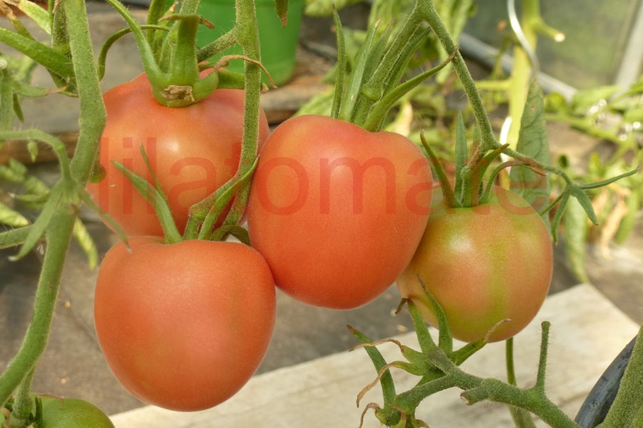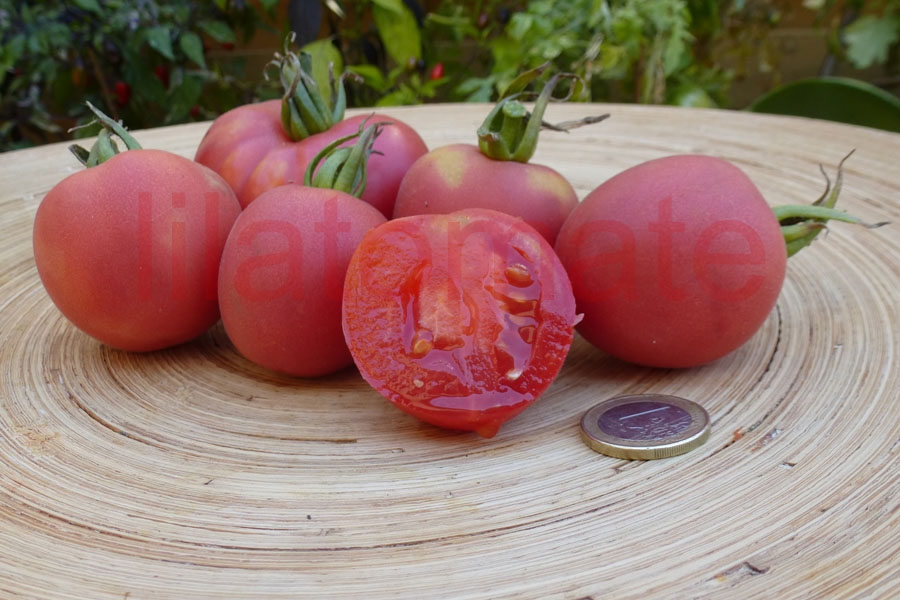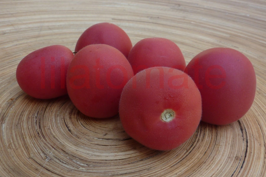 Sehr hübsche, dunkelrosa, flachrunde bis rund, 4 - 6 cm große, leicht behaarte Tomate mit angenehmen Fruchtfleich. Schmeckt fruchtig, würzig. Die ganze Pflanze ist leicht behaart und hat sehr schönes blaugrünes Laub. Ich baue die wüchsige, gesunde 2,4 m hohe Pflanze im Gewächshaus an. Ihre Erträge sind früh ab Juli, lange und reichlich. Die Früchte reifen gut nach. Ihr Aroma verbesserte sich bei mir in den letzten Jahren. 2023 landete eine Pflanze "aus Versehen" in meinem Gewächshaus und brachte eine reiche Ernte leckerer Früchte von Ende Juli bis Anfang November.