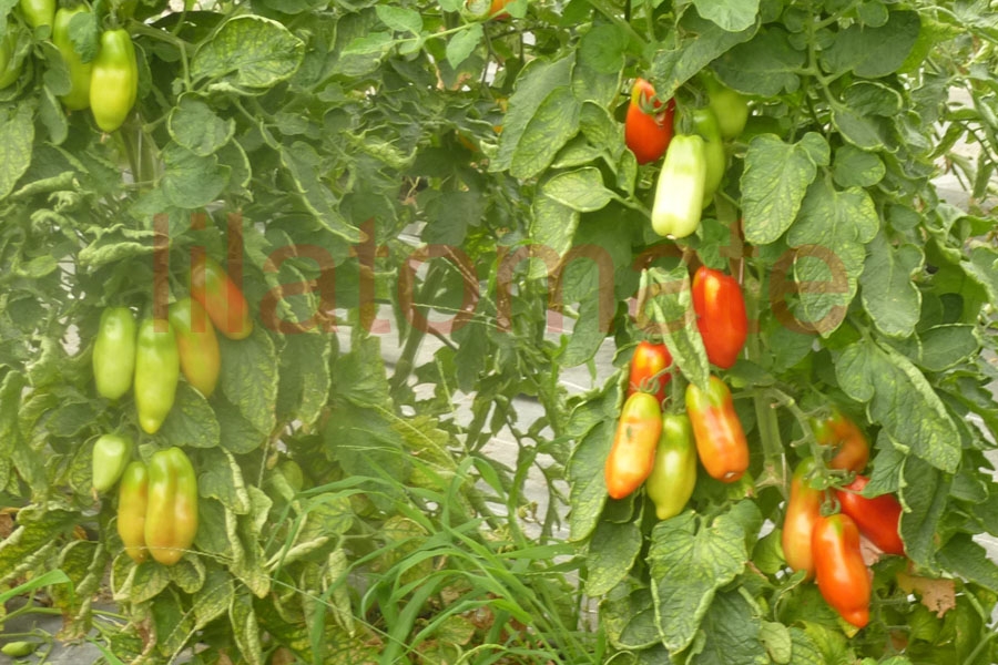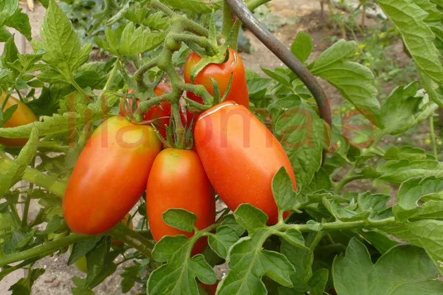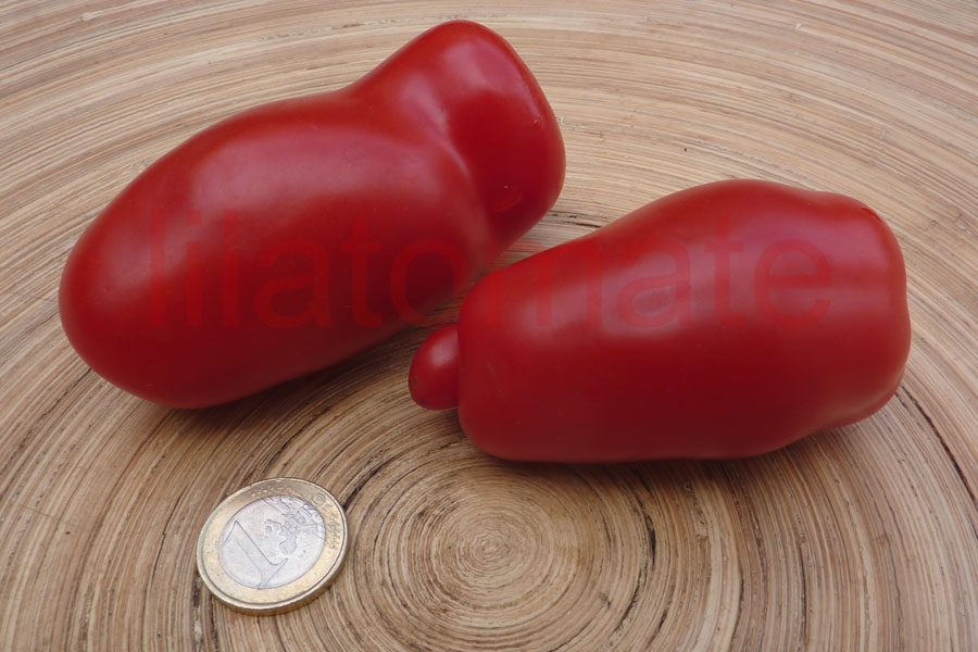 Feste 6 -12 cm lange, schnittfeste, mild würzige Flaschentomate, die sich sehr gut zu Soßen verarbeiten lässt. Die Früchte haben kaum Schnittabfall und sie sind schön und ebenmäßig. Die wüchsigen Pflanzen werden 2,5 - 3 m hoch. Ich habe mit dieser Sorte sehr hohe, lange und reiche Ernten im Gewächshaus von Mitte Juli bis Mitte Oktober. Im Freiland sind die Pflanzen bei mir gar nicht gediehen.