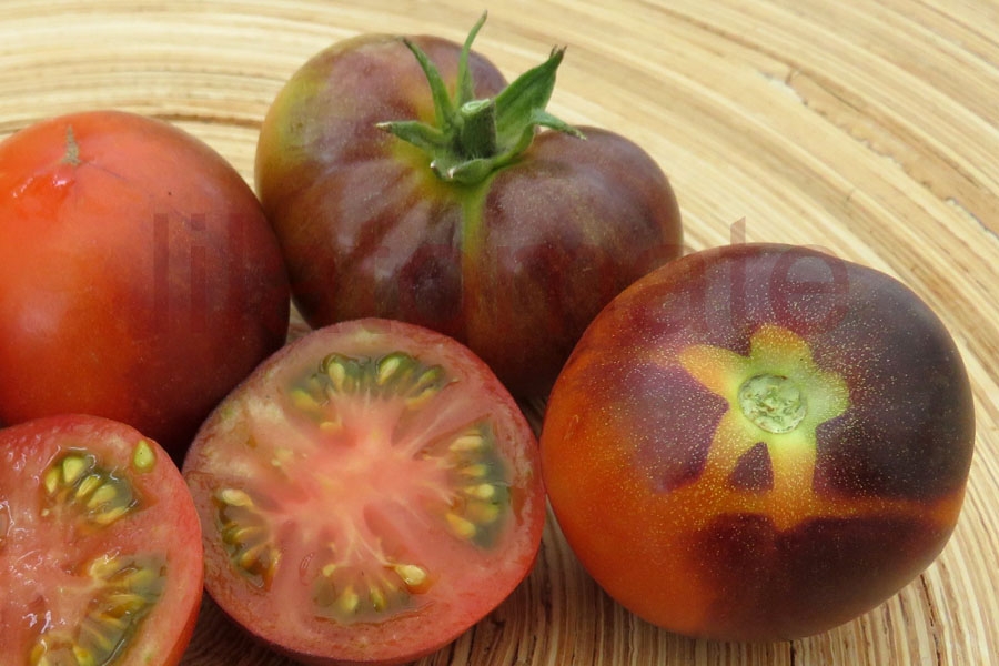 Runde bis flachrunde, saftige, rosahellviolettblaue 3-6 cm große Tomate. Bei warmer Witterung fand ich das Aroma fruchtig süß, bei kalter Witterung etwas wässrig. Ich baute diese etwa 1,8 m hohe wüchsige Stabtomate 2017 das erstemal im Gewächshaus an. Sie brachte ab Ende Juli einen frühen, sehr hohen Ertrag. Ab Mitte August wurde es weniger mit Aroma und Ertrag. Wie es im Freiland mit den Ertrag bestellt ist kann ich nicht sagen. Ich werde mich um meine ähnlichen anderen Sorten kümmern und biete das Saatgut nur vom Erntejahr 2017 an.