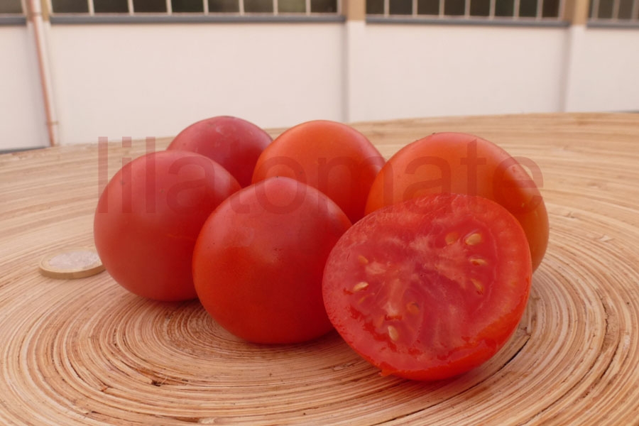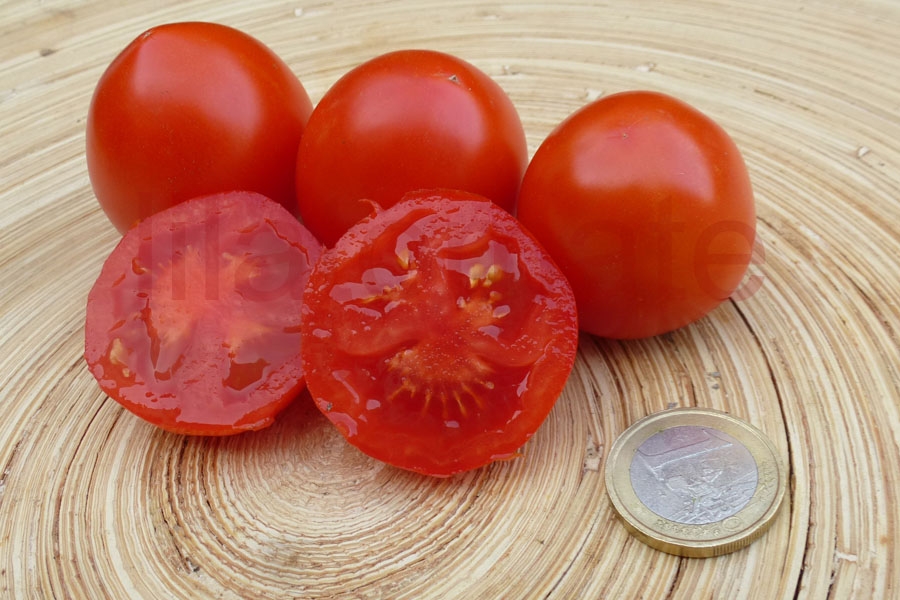 Rote, runde bis flachrunde 4 -6 cm Tomatenfrüchte mit fruchtig würzigen Geschmack Die etwa 50 -60 cm hohe Stabtomate trägt ab Juli im Freiland und ist gut für den Anbau in mindestens 20 l großen Töpfen oder im Hochbeet geeignet.